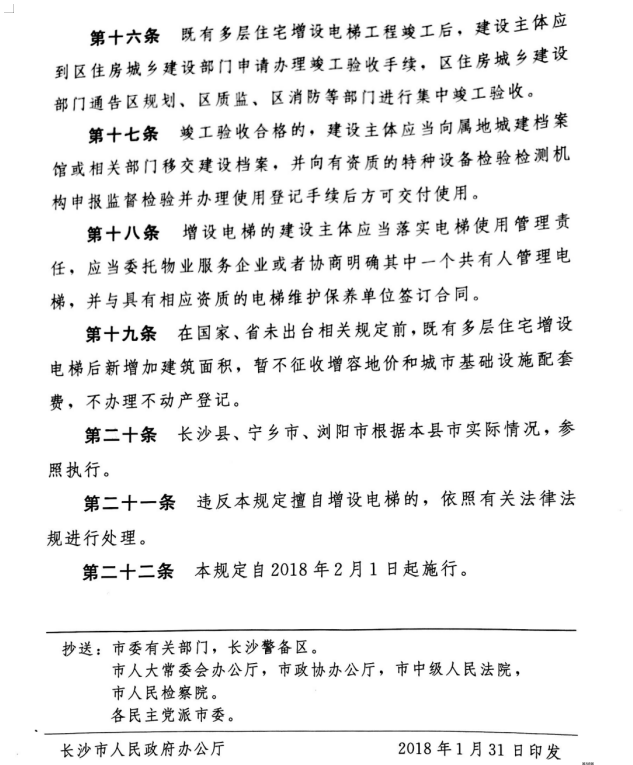 長沙老舊小區(qū)需要舊樓加裝電梯、多層樓房加裝電梯,現(xiàn)在就可以向所在區(qū)住建部門提出申請。長沙市住建委今日表示,《長沙市既有多層住宅增設電梯管理規(guī)定》已經(jīng)市人民政府同意并實施。《規(guī)定》明確,只要所在樓棟或單元三分之二以上業(yè)主同意,就可以樓棟和單元為單位申請增設電梯,增設電梯還可申請公積金。